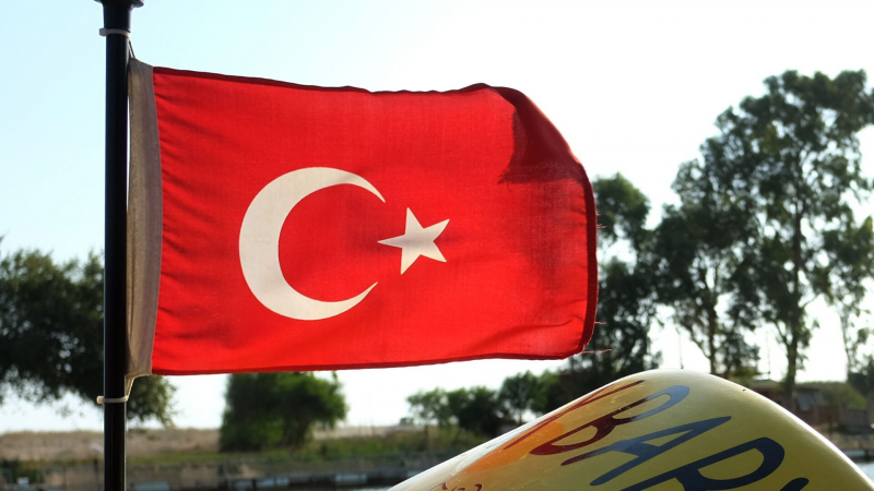 Флаг Турции на катере в Анталье. Архивное фото