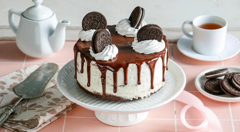 Чизкейк «Орео» без выпечки — выбрав наш рецепт, вы сможете сделать дома изысканный десерт, даже если у вас нет духовки. Чтобы бока получились максимально ровными, возьмите ацетатную ленту, а украсить чизкейк вам помогут кондитерский мешок и насадка «Закрытая звезда» с 5-6 лучами. И, конечно, не забудьте купить пачку оригинального печенья: если для основы и наполнения вполне подойдет обычное песочное шоколадное печенье, то черно-белое «Орео» хорошо использовать в качестве декора. Десерт получается не слишком тяжелым на вкус, достаточно нежным, но сытным. Стоит того, чтобы попробовать!