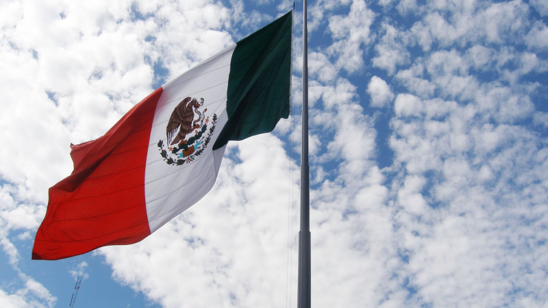 Флаг Мексики на центральной площади Мехико. Архивное фото
