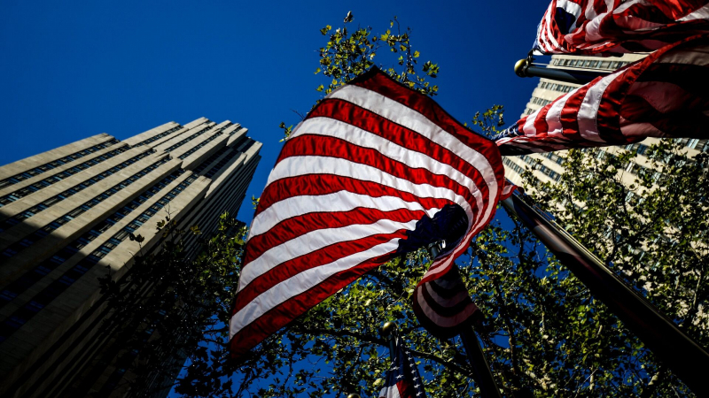 Флаги США возле Рокфеллеровского центра в Нью-Йорке. Архивное фото