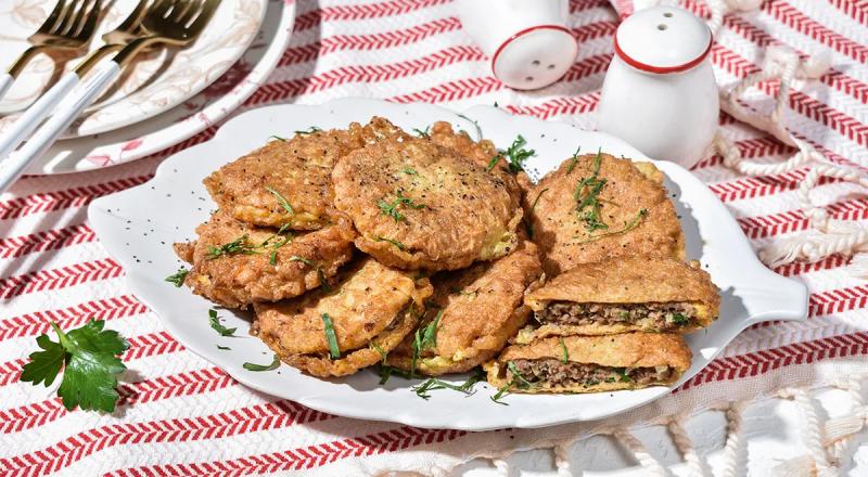 Котлеты в вафельных коржах придуманы очень находчивыми кулинарами. Но мы бы лучше назвали их вафельными сэндвичами с фаршем, а не котлетами, но народный нейминг рулит. Многие о таком блюде и не слышали, а кто-то у своих бабушек научился. Сейчас специально для изготовления таких котлеток продаются маленькие вафельные коржи — круглые, овальные или шестигранные. Можно выбрать любые. Состав у них простой — мука, соль, растительное масло, разрыхлитель. Толщина — 2–3 мм. Купить их можно на маркетплейсах. Раньше таких вафелек не продавали, но люди умудрялись готовить котлеты из больших вафель для торта, разрезая их. В примечании есть инструкция, как это сделать. Что касается фарша, то можно взять любой — от говядины и свинины до курицы и кролика. Или в смеси. Но приготовить фарш лучше самостоятельно.