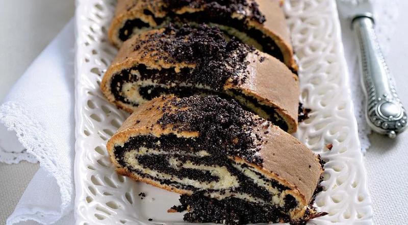 Рабочую поверхность чуть присыпьте мукой. Раскатайте тесто в прямоугольник толщиной примерно 1 см. Равномерно распределите по всей поверхности маковую начинку, отступая от краев 1–2 см. Аккуратно сверните тесто в плотный рулет. Переложите его на противень, застеленный пергаментом, швом вниз. Сверху посыпьте отложенным маком.