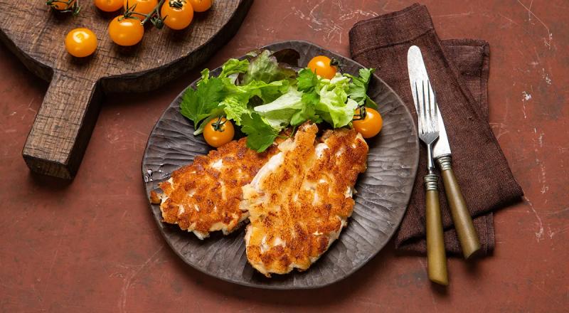 4Порции+Куриная грудка 800 гХлеб черствый 350 гЯйцо куриное 4 шт.Вода 4 ст.л.Масло растительное рафинированное 100 млСоль по вкусуПерец чёрный молотый по вкусу