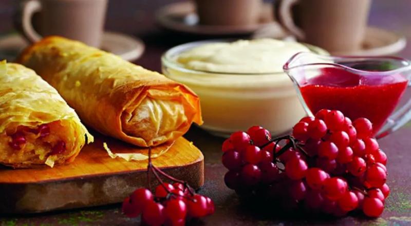 Штрудель с яблоками и калиновым соусом, фото готового блюда (Фото: ООО «Издательский дом «Гастроном»)