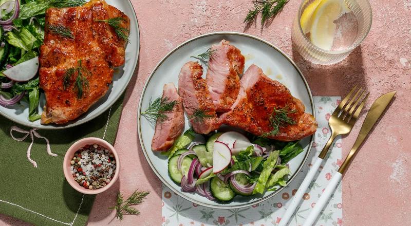 Свинина су-вид всегда получается очень сочной и буквально тающей во рту. Технология приготовления заключается в длительном томлении мяса в собственном соку при низких температурах, что исключает его пересушивание. Кроме свиной шеи здесь можно взять лопатку или бедренную часть — главное, чтобы мясо имело тонкие жировые прослойки, которые и сделают его сочным и вкусным. Важный момент — толщина стейков должна быть не меньше 2,5 см. Свинину су-вид, рецепт приготовления которой мы предлагаем, можно подавать с хрустящим картофелем фри, свежими овощами и любым соусом по вкусу.